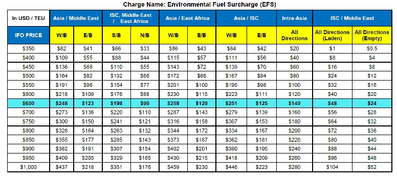 チャージ名 : ENVIRONMENTAL FUEL SURCHARGE (EFS)